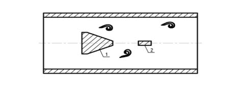 1-旋涡发生体 2-压电传感器