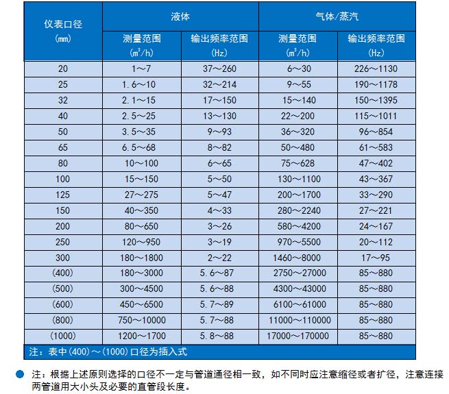 工况体积测量范围表